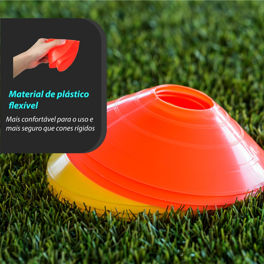 Melhore seus treinos com o Kit Chapéu Chinês JustGoFit, ideal para demarcação em atividades esportivas, treinos funcionais, academias, escolas e muito mais! Fabricado em material plástico resistente e durável, esse acessório essencial garante alta visibilidade e praticidade no dia a dia. Kit com 10 unidades + sacola para armazenamento: - Material plástico resistente, flexível e durável, ideal para uso frequente - Ideal para circuitos de agilidade, futebol e treinos educativos - Design leve e empilhável para fácil armazenamento - Cores vibrantes que facilitam a visualização em qualquer ambiente - Fácil de limpar, transportar e organizar - Compatível com treinos indoor e outdoor Seja você um treinador, educador físico ou entusiasta do esporte, este kit é a escolha certa para elevar a qualidade dos seus treinos!