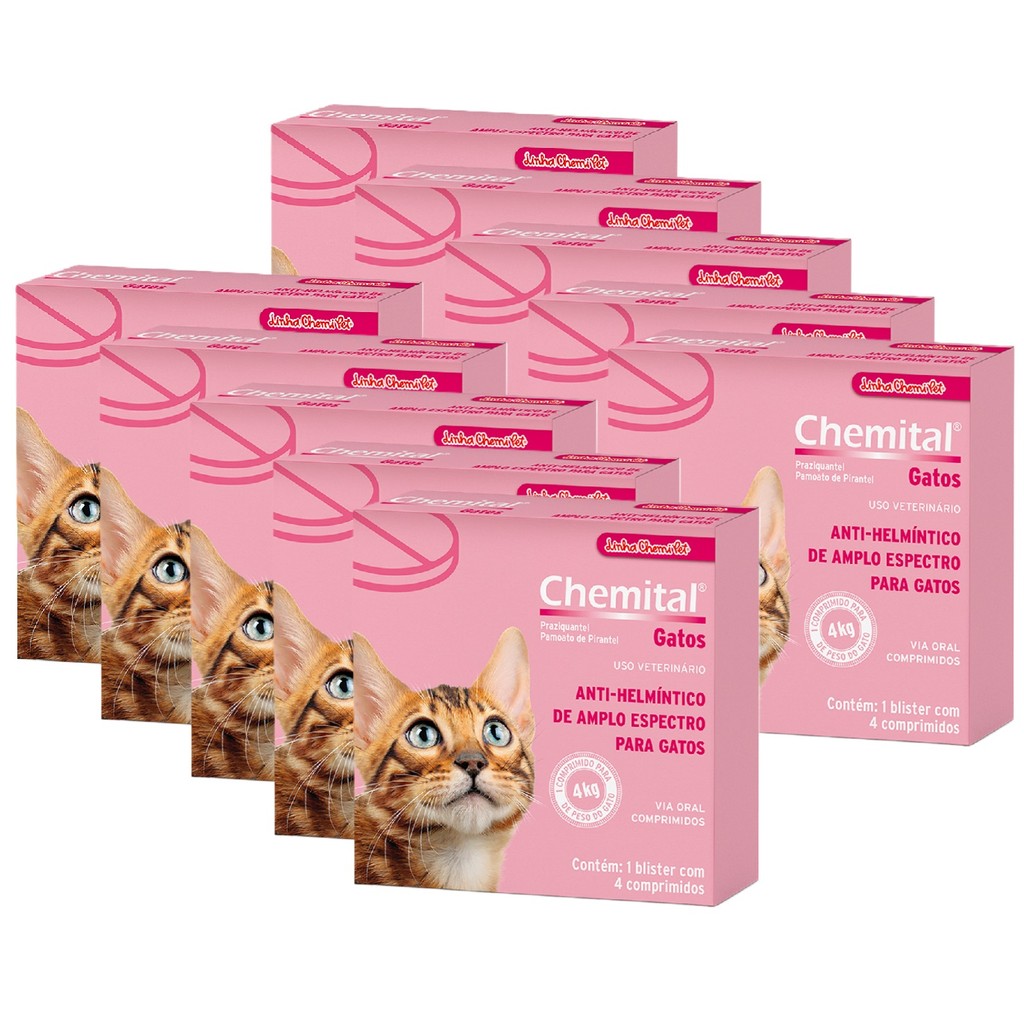 Kit 10 Chemital Chemitec Vermífugo para Gatos - 4 Comprimidos