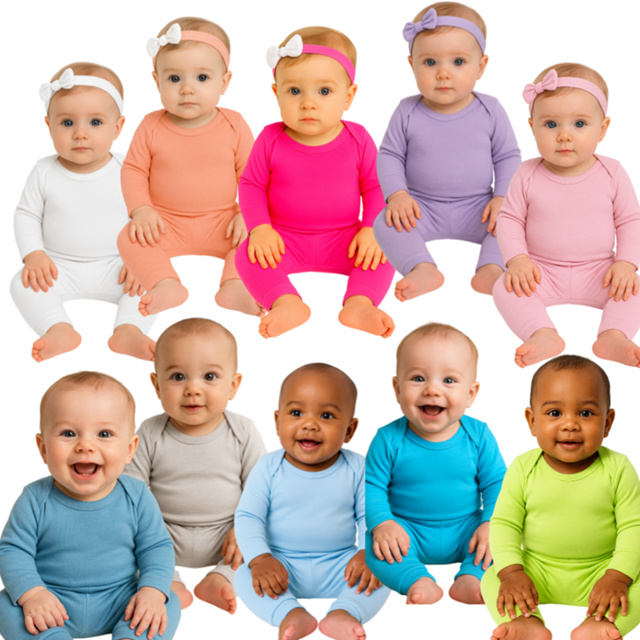 Kit 10 Conjunto Bebê liso Menino e Menina Suedine 100% Algodão 5 Bodys Manga Longa e 5 Calças