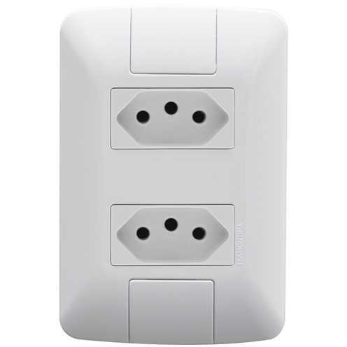 Kit 10 unidades Conjunto 4x2 com 2 Tomadas 2P+T 20a/250v Tramontina aria. Conjunto 2 Tomada 2P+T 20A/250V - Tramontina Aria Branca Conjunto completo com: 2 Módulo de Tomada 20A 1 Placa 4X2 2 Parafusos Os itens acima são enviados montados. Conjunto 4x2 com 2 Tomada 2P+T 20A/250V Tramontina Aria Branco é a escolha perfeita para fazer parte dos projetos da sua casa. Produzido em termoplástico branco, ele vai garantir maior praticidade e proporcionar um acabamento perfeito entre a placa e a parede, sem deixar frestas e vincos na instalação. Além disso, possui furo oblongo que facilita a fixação e a regulagem da placa à parede e evita que ela fique desalinhada. Sua fixação não é aparente e pode ser utilizada tanto em paredes de alvenaria, quanto em paredes de madeira. A placa ainda pode ser trocada por outras cores da linha, garantindo maior versatilidade. A escolha perfeita para compor seus ambientes, com muito mais