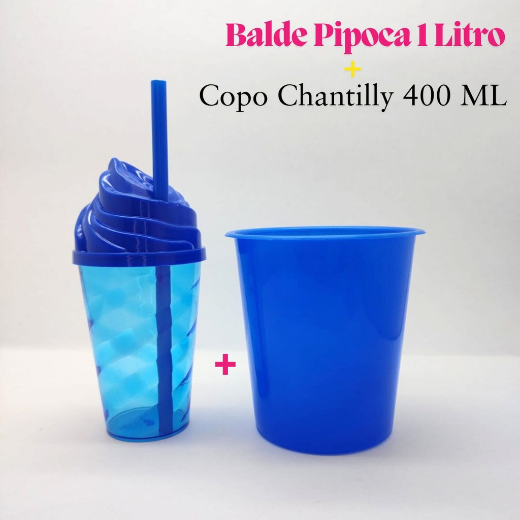 Kit 10 Copo Chantilly + 10 Cinema Baldinho Pop Pipoca 1L 400ml Aniversario Lembrancinha