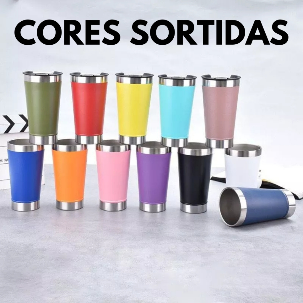 Kit 10 Copo Térmico 473ml Com Tampa e Abridor Copo Inox Atacado Carnaval