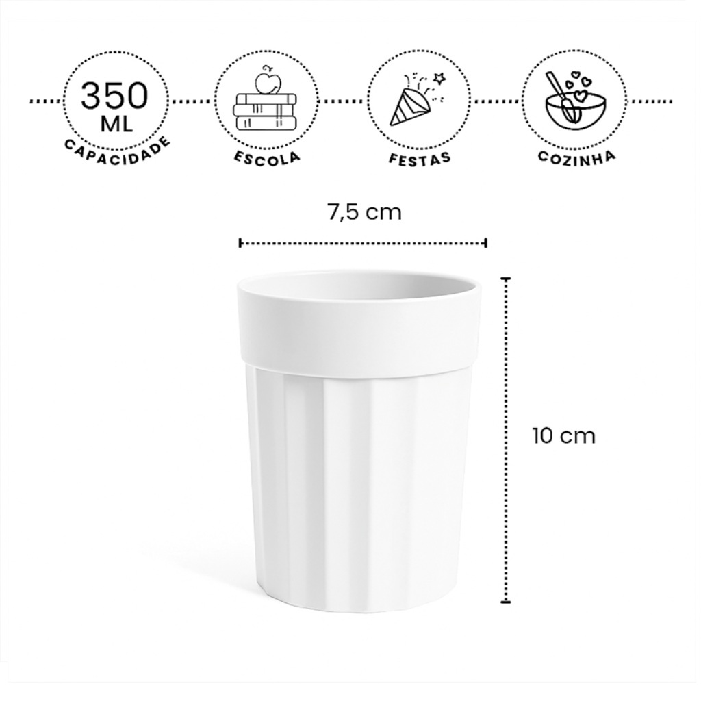 | Kit 10 Copos Reutilizáveis 350ml Plástico Resistente Lavável Colori... este produto | R$ 21,00 | — | 4.9/5 | 8 |