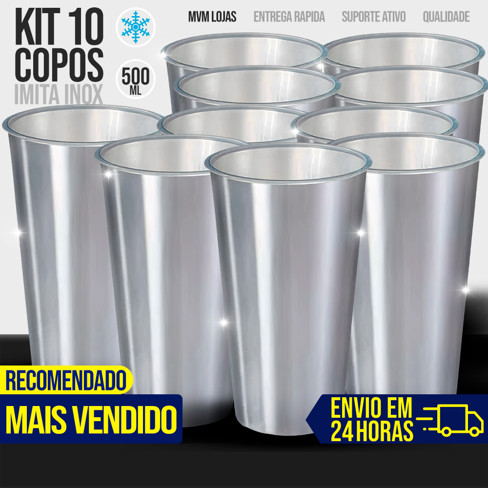 | Kit 10 Copos Tipo Inox 500ml Grande Resistente Multiuso Long Neck F... este produto | R$ 19,90 | 67% | 4.1/5 | 309 |