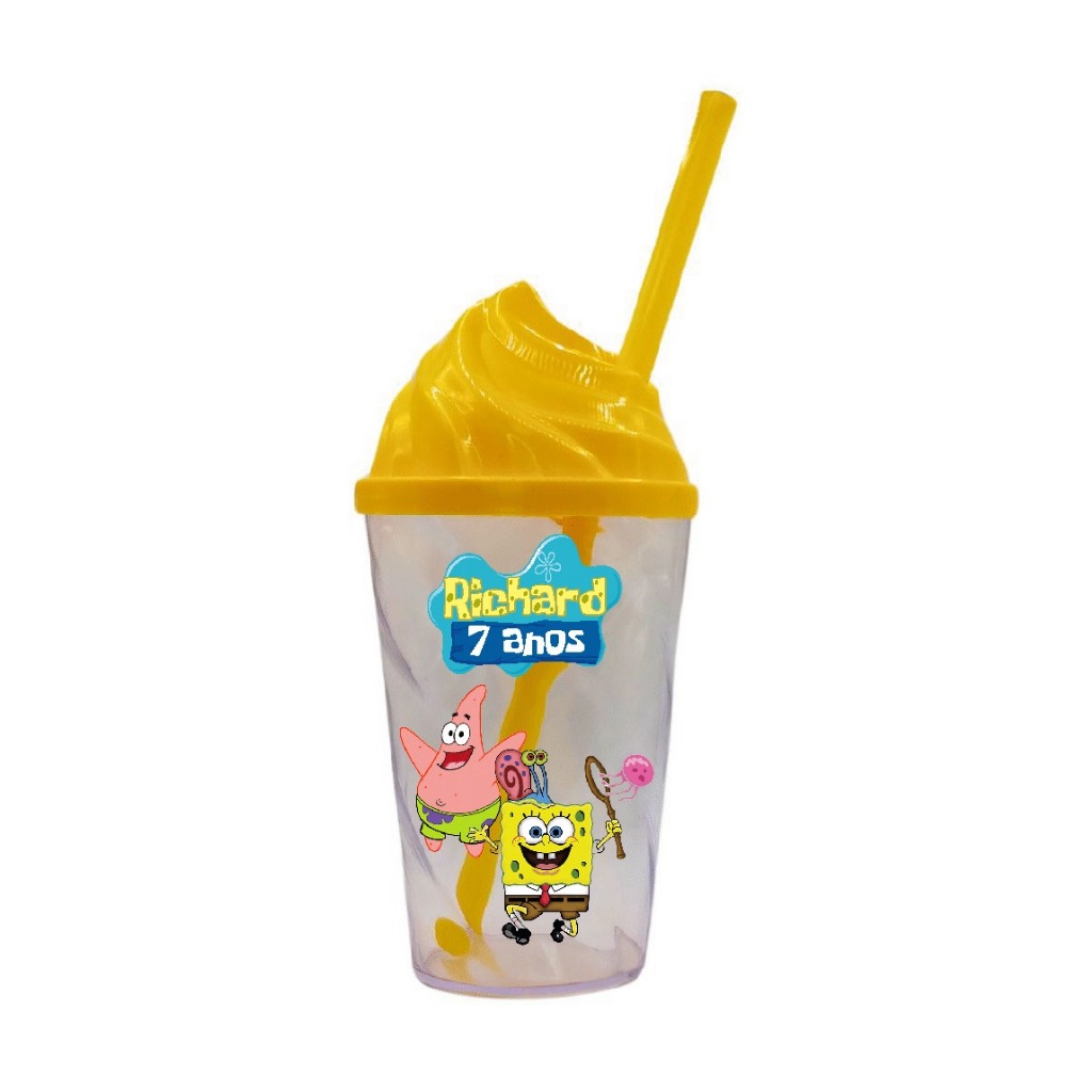 Kit 10 Copos Twister 300ml com Tampa Chantilly Personalizado Bob Esponja