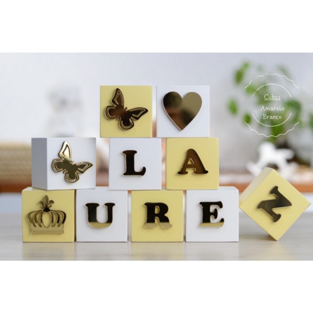 | Kit 10 Cubos Enfeite Dado Nome Espelhado Bebe Quarto Bancada C10 este produto | R$ 115,50 | — | 5.0/5 | 1 |