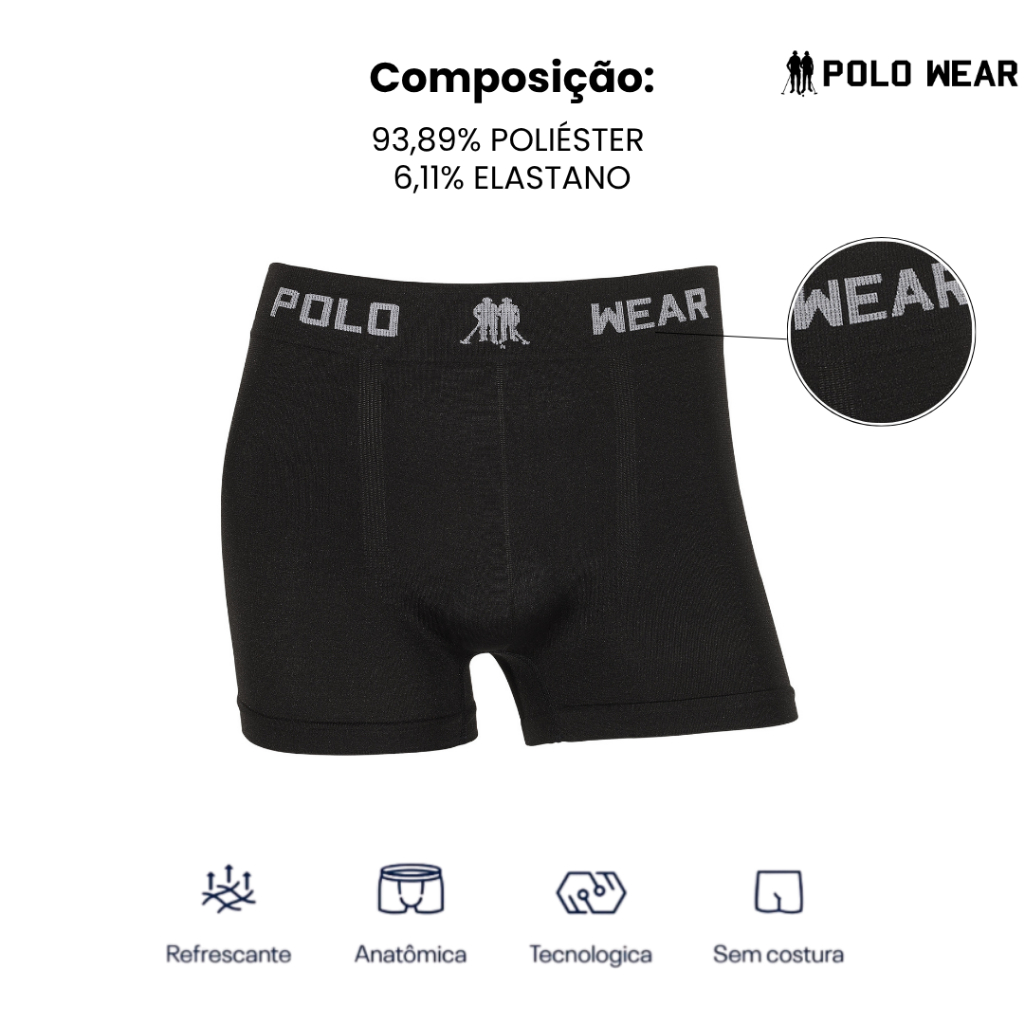 Kit 10 Cuecas Box Microfibra Lisa Sem Costura Polo Wear - Adulto