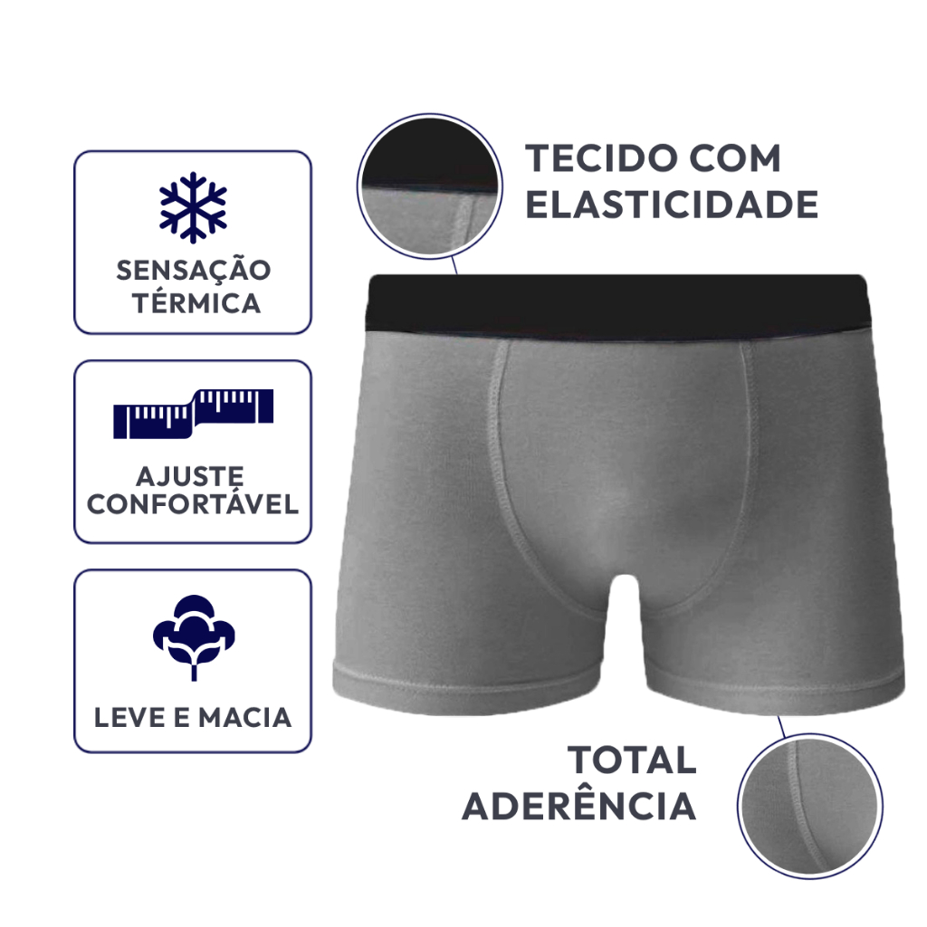 KIT 10 Cuecas Boxer Algodão Cotton Cinza Com Poliester C5