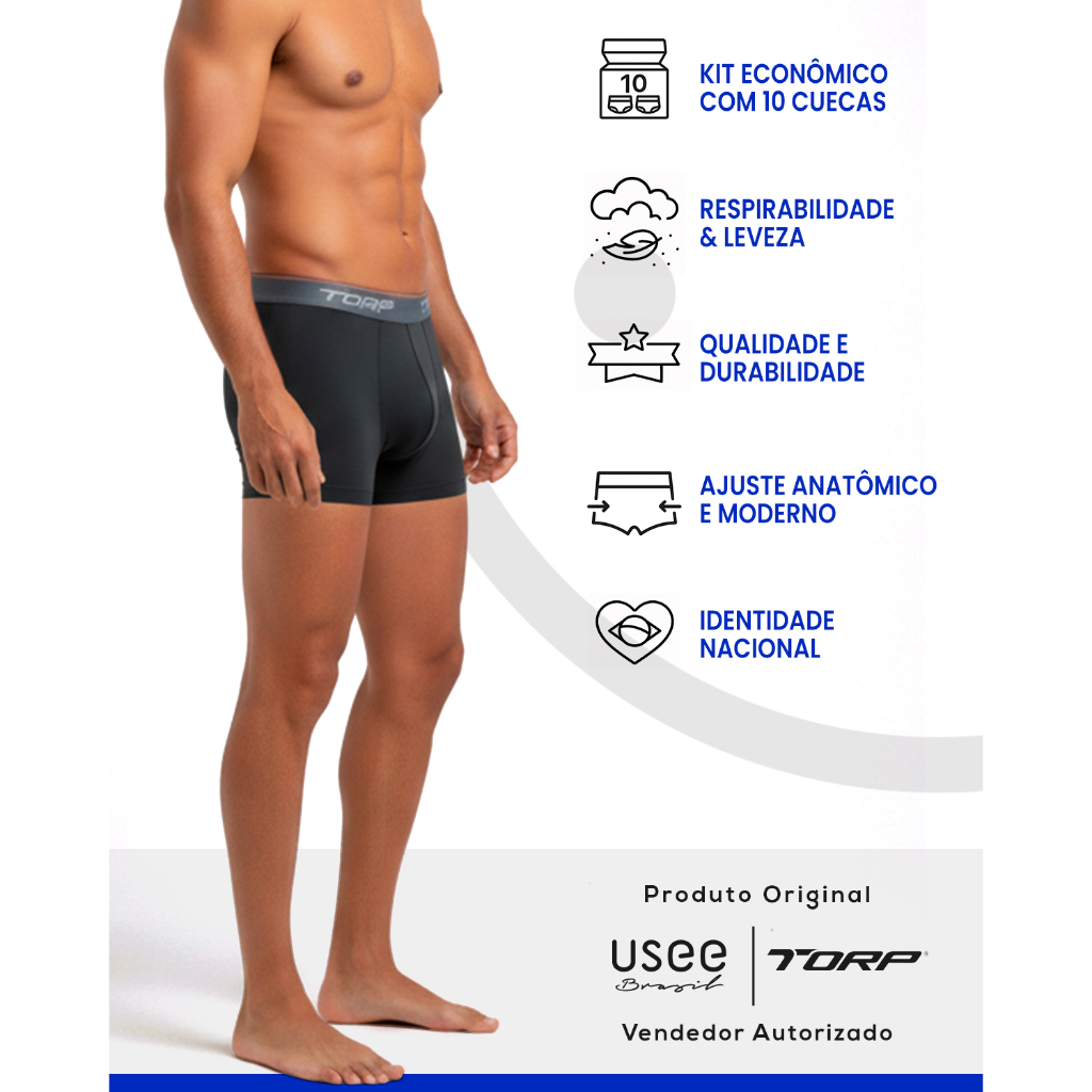 Kit 10 Cuecas Boxer Masculina Torp Microfibra Confortável Original