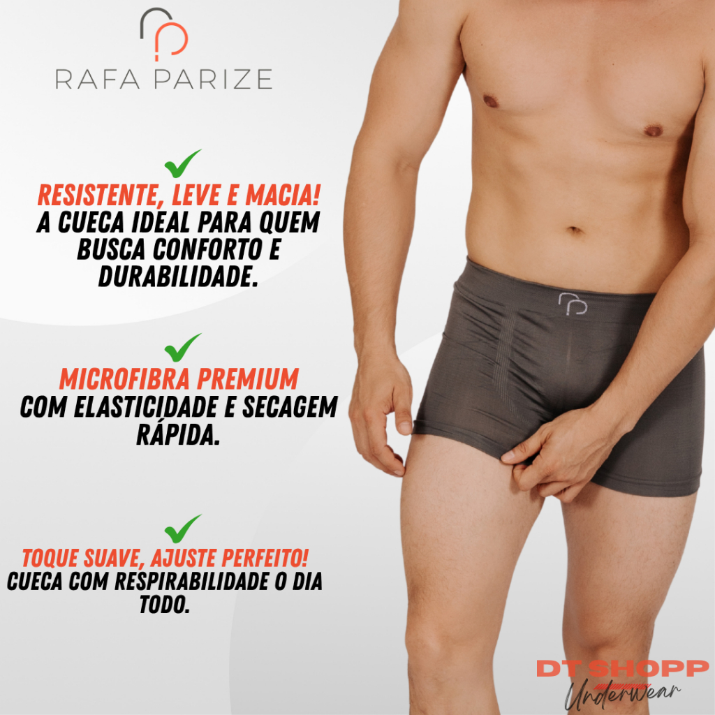 Kit 10 Cuecas Boxer Sem Costura em Microfibra Rafa Parize - Adulto
