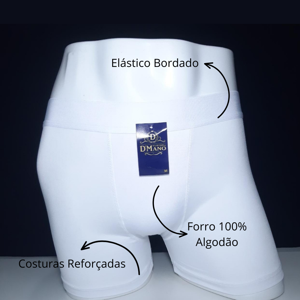 Kit 10 Cuecas Boxer Adulto Toda Branca ⚪ Descubra o conforto puro e a simplicidade elegante com o Kit 10 Cuecas Boxer Box Adulto Lisa Toda Branca Romantic. Desenvolvidas para homens que valorizam o estilo atemporal e o conforto duradouro, estas cuecas são a escolha ideal para acompanhar você em todas as atividades do dia a dia. ESPECIFICAÇÕES: -Contém 10 unidades; -Forro: 100% Algodão; -Tecido: 92% Poliéster e 8% Elastano; - Ocasião de Uso: Dia a dia, casual; -Gênero: Masculino. ____________________________________________________ GUIA DE TAMANHOS: P: Cintura 65 cm; Perna 39 cm; Altura 26 cm; M: Cintura 68 cm; Perna 40 cm; Altura 27 cm; G: Cintura 73 cm; Perna 41 cm; Altura 29 cm; GG: Cintura 77 cm; Perna 45 cm; Altura 30 cm; EXG: Cintura 84 cm; Perna 49 cm; Altura 36 cm. ____________________________________________________ - Envio Imediato - Cada cueca acompanha sua própria embalagem individual; - Pode pedir vários tamanhos no kit, é só deixar uma mensagem depois de comprar; - A pronta entrega, enviamos em até 24 horas. ____________________________________________________ *Por que escolher o Kit 10 Cuecas Boxer Toda Branca?* 1. Elegância Clássica: O branco puro dessas cuecas adiciona um toque de sofisticação e versatilidade ao seu guarda-roupa íntimo, combinando perfeitamente com qualquer estilo ou ocasião. 2. Conforto Absoluto: Fabricadas com tecidos macios e respiráveis, estas cuecas garantem conforto incomparável durante todo o dia, mantendo você fresco e confiante em qualquer situação. 3. Ajuste Sob Medida: Com sua modelagem anatômica e cintura elástica, estas cuecas proporcionam um ajuste perfeito ao corpo, permitindo total liberdade de movimento sem sacrificar o conforto. 4. Durabilidade Premium: Construídas com materiais de alta qualidade e costuras reforçadas, estas cuecas são projetadas para resistir ao desgaste do uso diário e das lavagens repetidas, mantendo-se como novas por muito tempo. 5. Economia Inteligente: Com o Kit 10 Cuecas Boxer Toda Branca , você obtém não apenas qualidade excepcional, mas também economia e praticidade, recebendo 10 cuecas de alta qualidade em um único pacote. Eleve seu conforto e estilo com o Kit 10 Cuecas Boxer Toda Branca. Adquira o seu hoje mesmo e experimente o prazer de vestir-se com elegância e conforto todos os dias! ___________________________________________________ BOAS COMPRAS!!