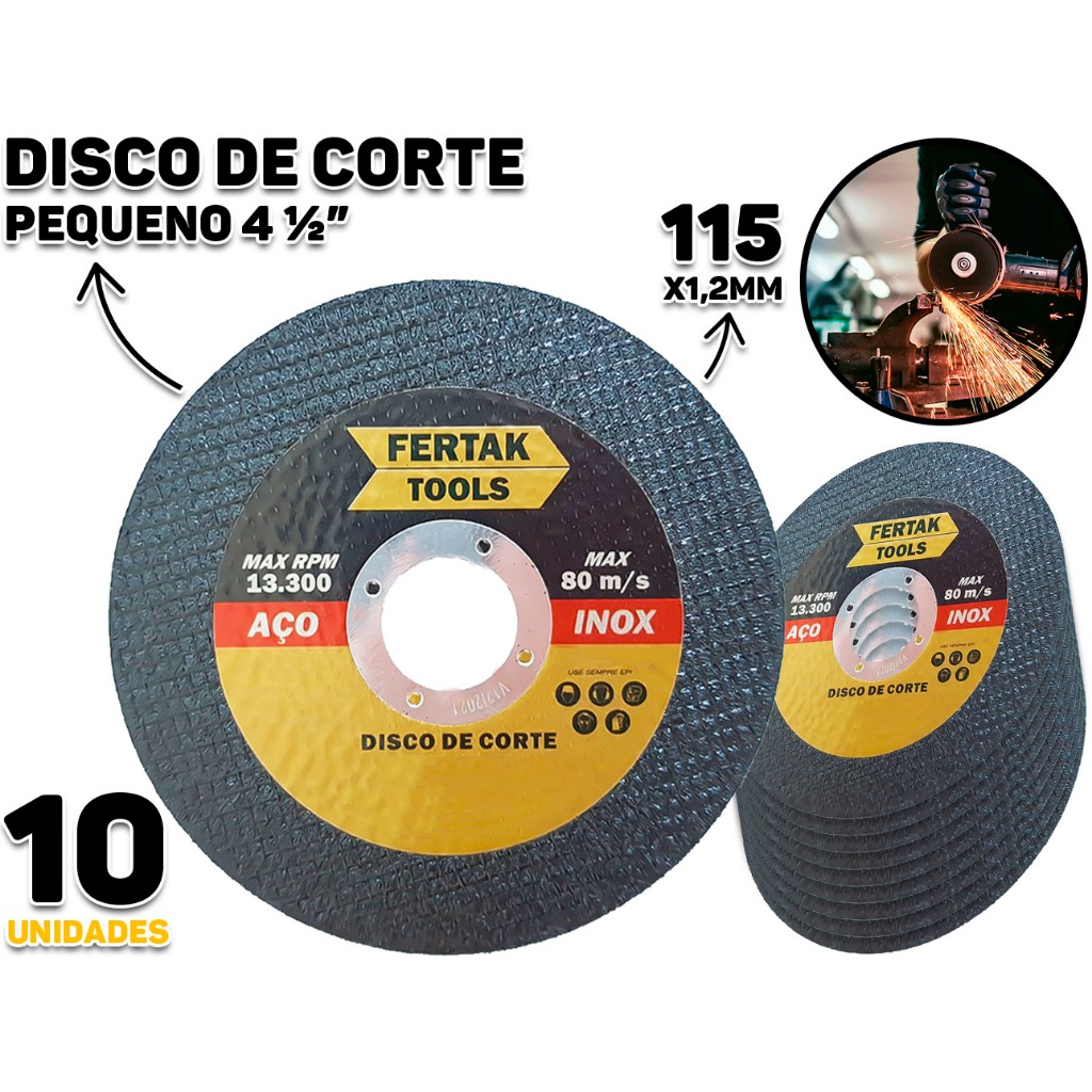 Kit 10 Disco De Corte Pequeno Fino Aço Inox 4.1/2" x 115x22x1,2mm Para Lixadeira Esmerilhadeira Fertak