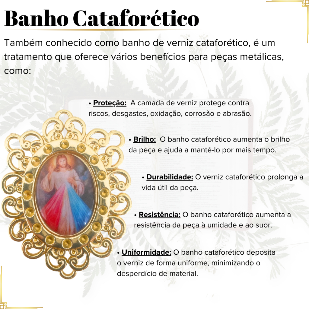 📿 KIT 10 ENTREMEIOS CAMAFEU RELIGIOSO DOURADO COM IMAGENS DE SANTOS • Envio imediato para todo o Brasil! • Escolha os modelos desejados via CHAT. • Ideal para montagem de terços, pulseiras e peças artesanais. 📌 MODELOS DISPONÍVEIS: 🔹Jesus Misericordioso; 🔹Maria Passa na Frente; 🔹Mãe Rainha; 🔹Nossa Senhora da Piedade; 🔹Nossa Senhora Aparecida; 🔹Nossa Senhora de Fátima; 🔹São Bento; 🔹Santa Terezinha; 🔹São Miguel Arcanjo; 🔹São José. ✝️ INFORMAÇÕES TÉCNICAS: • Material: Metal Zamak; • Acabamento: Verniz Dourado Cataforético; • Tamanho: 3,5 cm x 4,5 cm (Largura x Altura); • Detalhes: Entremeio com Imagem Religiosa Impressa Envernizado. ✅ BENEFÍCIOS DO PRODUTO: • Representa fé, proteção e espiritualidade; • Pode ser resinado para acabamento personalizado; • Produto leve, resistente e com ótimo custo-benefício; • Ideal para montagem de bijuterias religiosas e devocionais. 💬 SUPORTE E ATENDIMENTO AO CLIENTE: Se tiver dúvidas, entre em contato pelo CHAT. Nossa equipe está pronta para te ajudar! 📌 Dúvidas Frequentes: 🔹 O produto é novo? Sim, trabalhamos apenas com produtos novos. 🔹 O produto é original? Sim, todos os nossos produtos são de fabricação própria. 🔹 O produto é igual ao da foto? Sim, todas as fotos são fiéis ao que você receberá. 🔹 As fotos são da internet? Não, todas as imagens são próprias e de nossa autoria. SOBRE A BIA BIJOU: Somos especialistas na fabricação de bijuterias e peças religiosas há mais de 20 anos. Nosso compromisso é oferecer novidades com qualidade, preços acessíveis e um atendimento de excelência. Nosso time está à disposição para tirar suas dúvidas, das 09:00 às 18:00.
