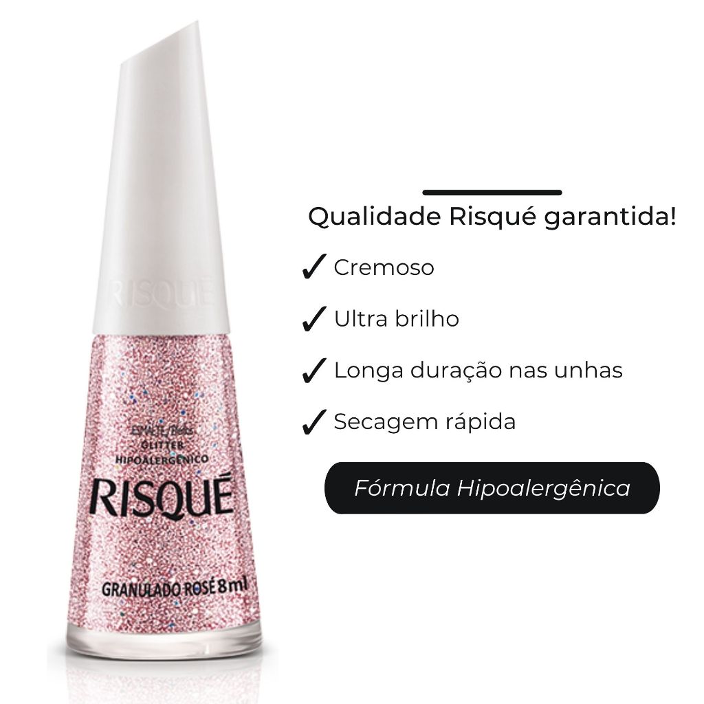 Kit 10 Esmaltes Risqué – Diversos Tons de Rosa | Cremosos e Perolados | Atacado O Kit Risqué Rosa traz uma seleção especial com 10 esmaltes em diferentes nuances de rosa, perfeitos para criar desde unhas delicadas e românticas até visuais mais ousados e modernos. Os esmaltes Risqué oferecem fórmula hipoalergênica, alta cobertura, secagem rápida e acabamento impecável — ideal para uso profissional ou pessoal. Este é um kit curinga para quem deseja ampliar a variedade da esmalteria ou oferecer mais opções às clientes no salão. Cores incluídas no kit completo: Nudeu Tempo Clima Tenso Entre Rosas Astral Pop Rose Rose Bombom Pérola Mini Saia Granulado Rosé Chiclete Me Esquece Look do Dia: Good Vibes Diferenciais do Produto: Acabamento cremoso e perolado com brilho intenso Fórmula hipoalergênica — segura para peles sensíveis Esmaltação uniforme, com excelente durabilidade Secagem rápida e fácil aplicação Ideal para manicures, salões e uso pessoal Especificações Técnicas: Marca: Risqué Tipo: Cremoso / Perolado Quantidade: 10 esmaltes Volume: 8 ml cada Indicação: uso profissional ou doméstico Produto original, novo e lacrado. Aproveite para renovar sua coleção com tons versáteis e atemporais. Qualquer dúvida, estamos à disposição para te ajudar!