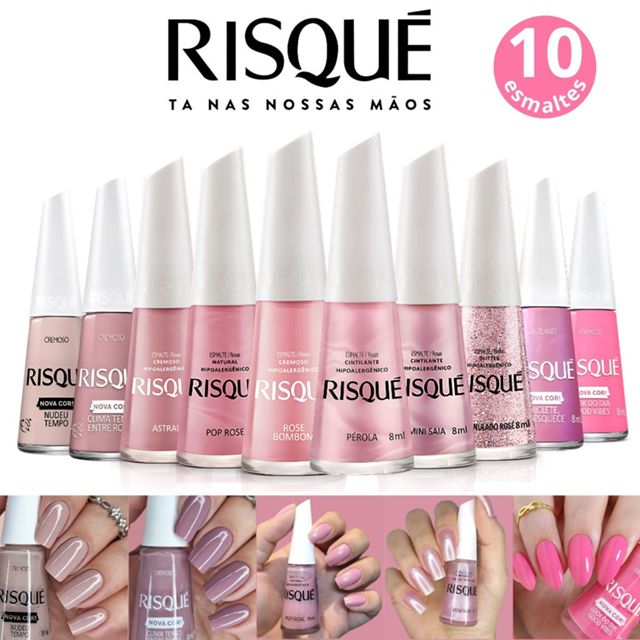 Kit 10 Esmaltes Risqué Diversos Tons Rosa Atacado