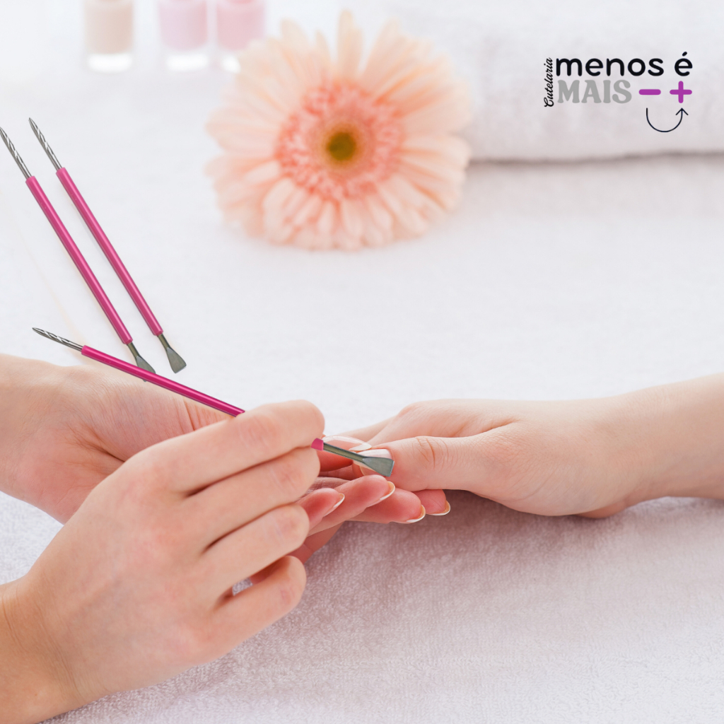 BASTÃO COM ESPÁTULA Pronta Entrega: Disponibilidade imediata, produto 100% nacional. De um lado a espátula, que afasta e empurra as cutículas das unhas, melhorando o aspecto da esmaltação. Do outro lado o Bastão, utilizado na hora de fazer a limpeza do esmalte nos cantos da unha. Possui "garras" que impedem o escorregamento do algodão no palito, permanecendo fixo durante o processo. Contém: Kit 10 Espátulas Slim - Bastão Mista Unha Inox ROSA Com Silicone Cutelaria Manicure Instrumentos essenciais para manicure, pedicure, salões de beleza, profissionais de podologia e uso doméstico. Suas funções facilitam de forma prática os procedimentos feitos em unhas. Itens esterilizáveis e revestidos em silicone, proporcionando mais segurança durante sua utilização.