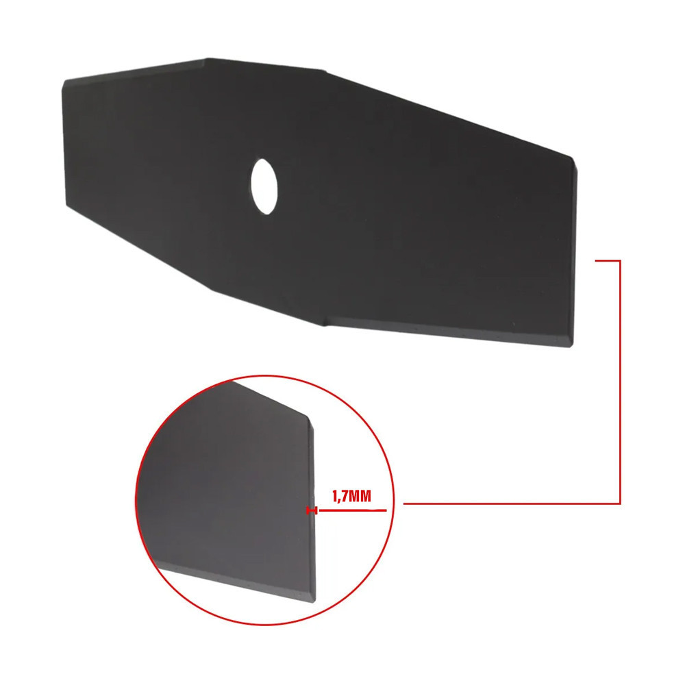 KIT 10 LÂMINAS 2 PONTAS ROÇADEIRA 350MM FURO 1 POLEGADA 1,7MM Produzidos pela Incolma, a Líder no mercado Latino americano. Aço laminado especial, mais produtividade pela força de impacto, fio mais resistente: corta mais, rende mais. -Lâmina Roçadeira duas Pontas aço 1074 com extra manganês. Conteúdo da embalagem: -10 facas lâminas. *Imagem meramente ilustrativa. Especificações TAMANHO: 1,7mm