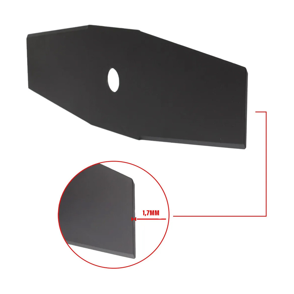 kit 10 Facas Lâminas de Roçadeira 2 Pontas 300mm Furo 1 polegada 1,7mm Incolma Lâmina para roçadeira 2 pontas é indicada para uso exclusivo em máquinas roçadeiras, para o corte de vegetação, grama, mato e capim em casas de campo, sítios, chácara, fazenda, empreiteiras, reflorestamento entre outros. Fabricado em aço alemão e produzido na Colombia, proporcionando menor desgaste e maior resistência. Tratamento térmico total. Aço de alta resistência. - Espessura: 1,7mm - Furo: Ø25,4 mm (1?) - Dimensões da Peça: 30 x 8 x 0,17cm Conteúdo da embalagem: 10 Facas Lâminas *Garantia: 03 meses contra defeitos de fabricação. *Imagens Meramente Ilustrativas. *Objetos de decoração das fotos não estão inclusos. *As cores podem variar conforme monitor/smartphone utilizado para a visualização do anúncio.