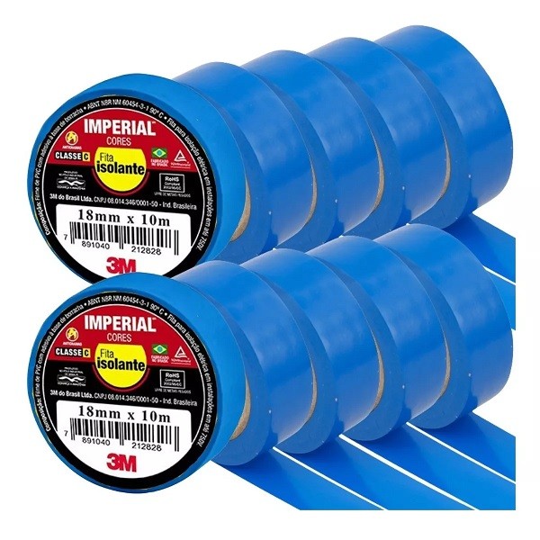 Kit 10 Fita Isolante 3M Imperial 18MM X 10M Azul