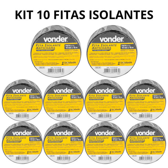 | Kit 10 fita isolante Vonder 10metros antichama este produto | R$ 28,80 | — | 4.9/5 | 124 |