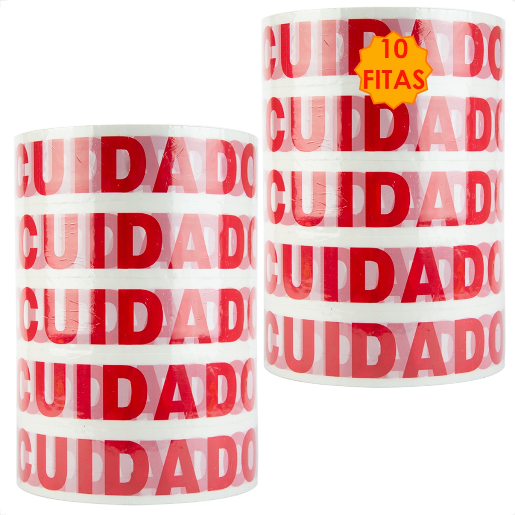 Kit 10 Fitas 500 Metros Cuidado Frágil Larga Caixas Adesiva Durex Embalagens Alta Aderência