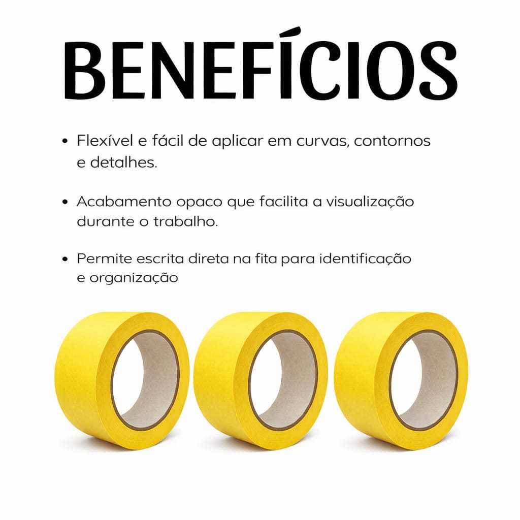 Kit 10 Fitas Automotiva Crepe Funilaria 45mm x 50m Pintura Profisional Amarela Oficina Polimento