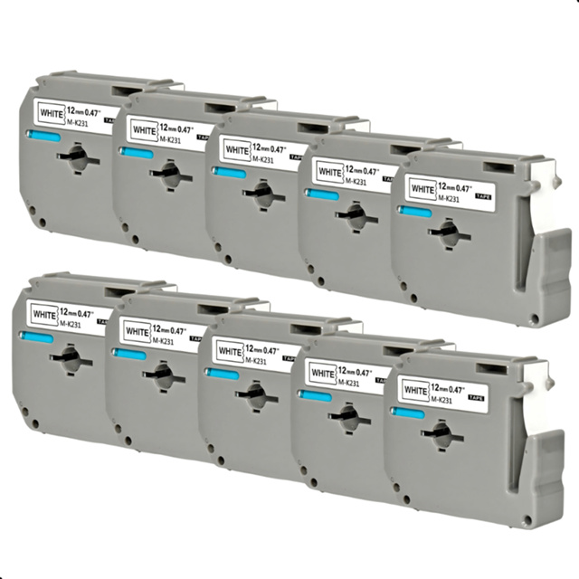 Kit 10 Fitas para Etiquetador Compatível Brother M231 MK231 12mm Escritório Organização e Rotulagem