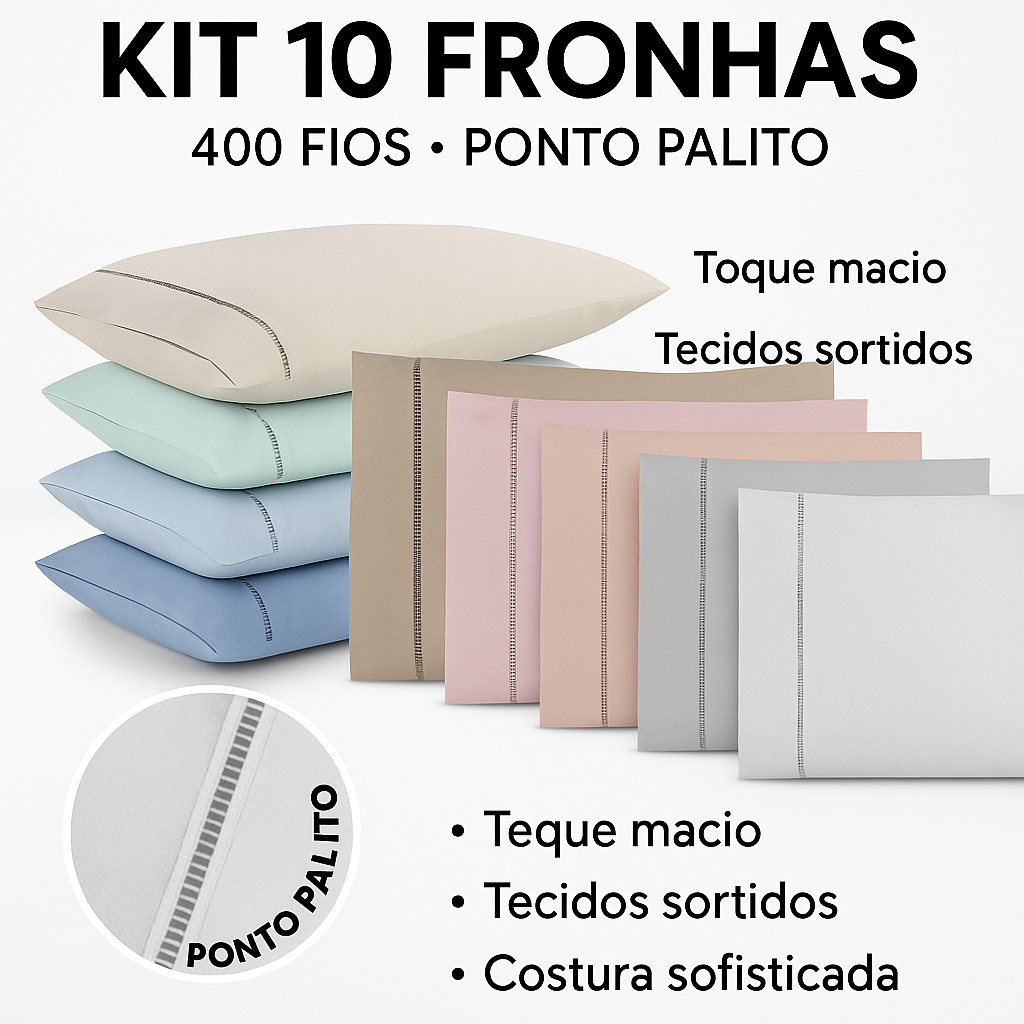 KIT 10 FRONHAS ( 5 PARES) 400 FIOS PONTO PALITO