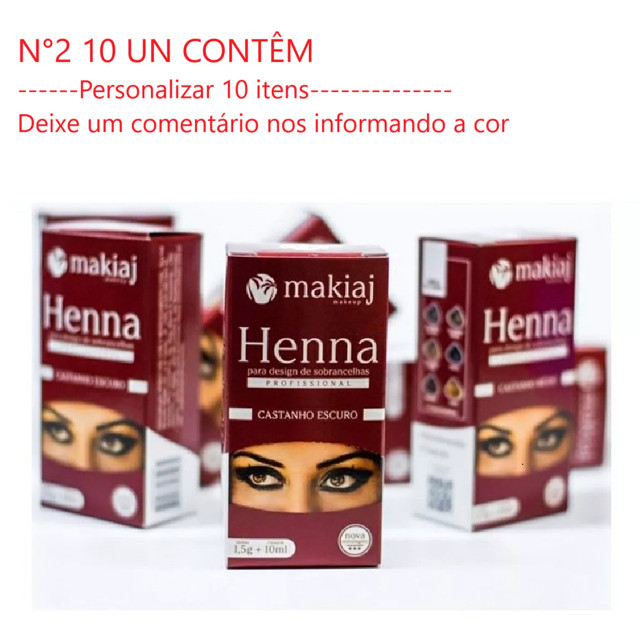 Kit 10 Henna Sobrancelhas Makiaj Natural Fixação Castanha Medio Claro Preto