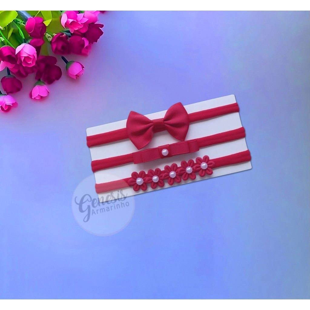 Kit 10 + kit de 03 Unidades Faixinhas Vermelha de Laços Para Bebê RN bêbe