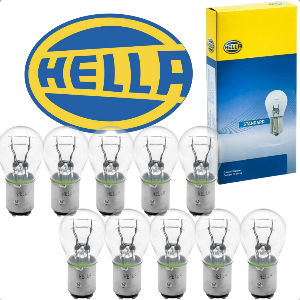 Kit 10 Lâmpada 2 Polos Freio Lanterna P21/5w Hella Original carro moto 12v. caixa 10 lampadas 7528
