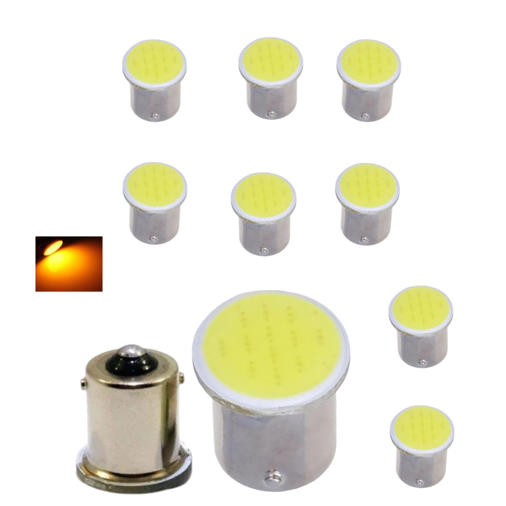 Kit 10 Lampada Cob Led Ba15s 1 Polo P21w 1156 1141 Laranja 12v