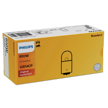 Somos a loja oficial da marca Philips, garantindo a qualidade e autenticidade do produto. Adquira conosco e desfrute da confiança e suporte direto da marca. Compre agora e adquira nossos produtos com eficiência e segurança! ----------- Este anúncio contém: 1 unidade Kit 10 Lâmpadas 12v R10w Tipo 67 12814CP ORIGINAL PHILIPS APLICAÇÕES: Placa, Indicador posterior, Luz de ré, 3a. luz de freio, Luz de estacionamento traseira Especificações: • Base: BA15s • Designação: PER-12814T-CN • Homologação ECE • Marcação ECE: E1 2BF • Linha: Standard • Tecnologia: Convencional • Tipo: R10W Características elétricas • Potência em watts: 10 W • Voltagem: 12 volt
