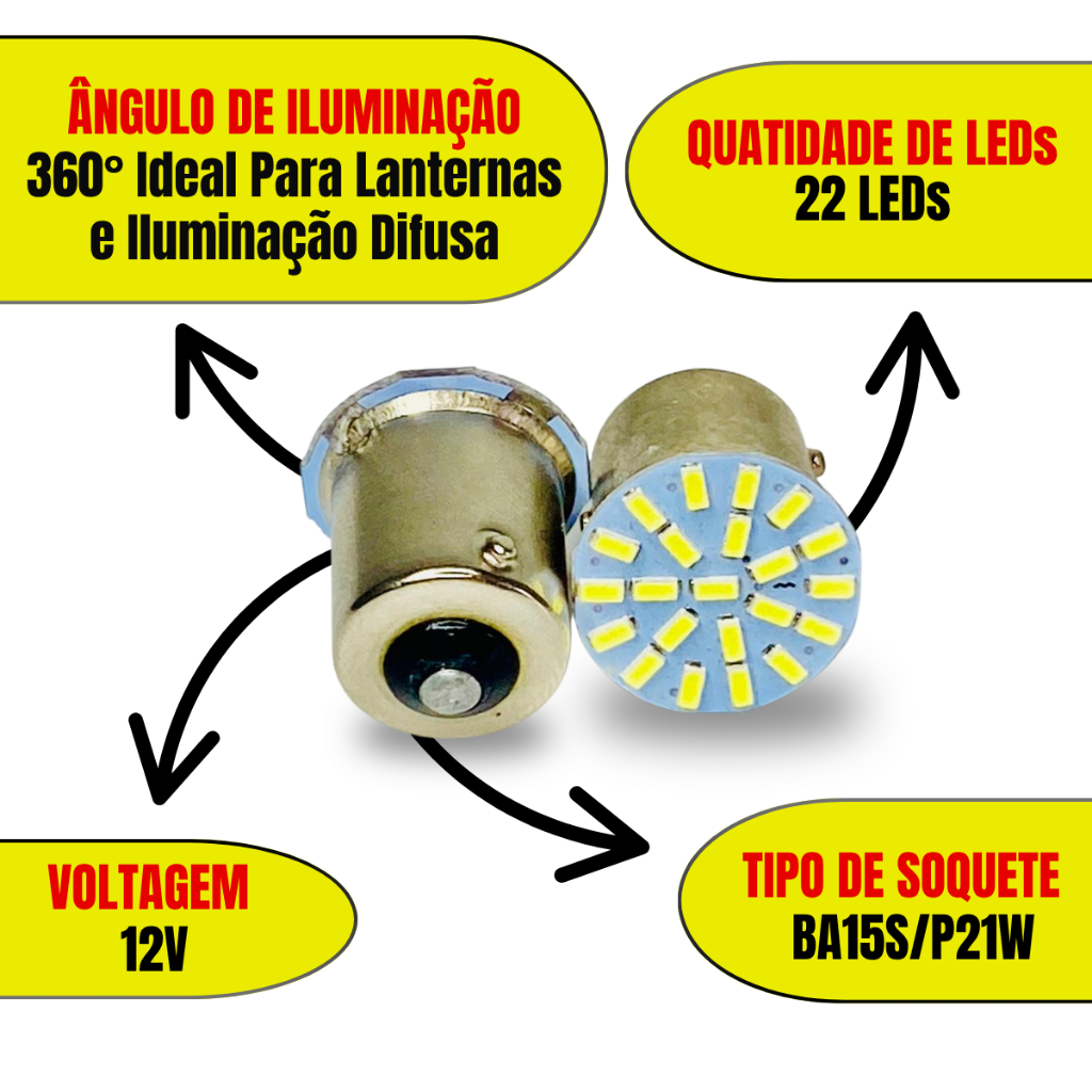 Kit 10 Lâmpadas 22 Leds 1 Polo BA15S Branca