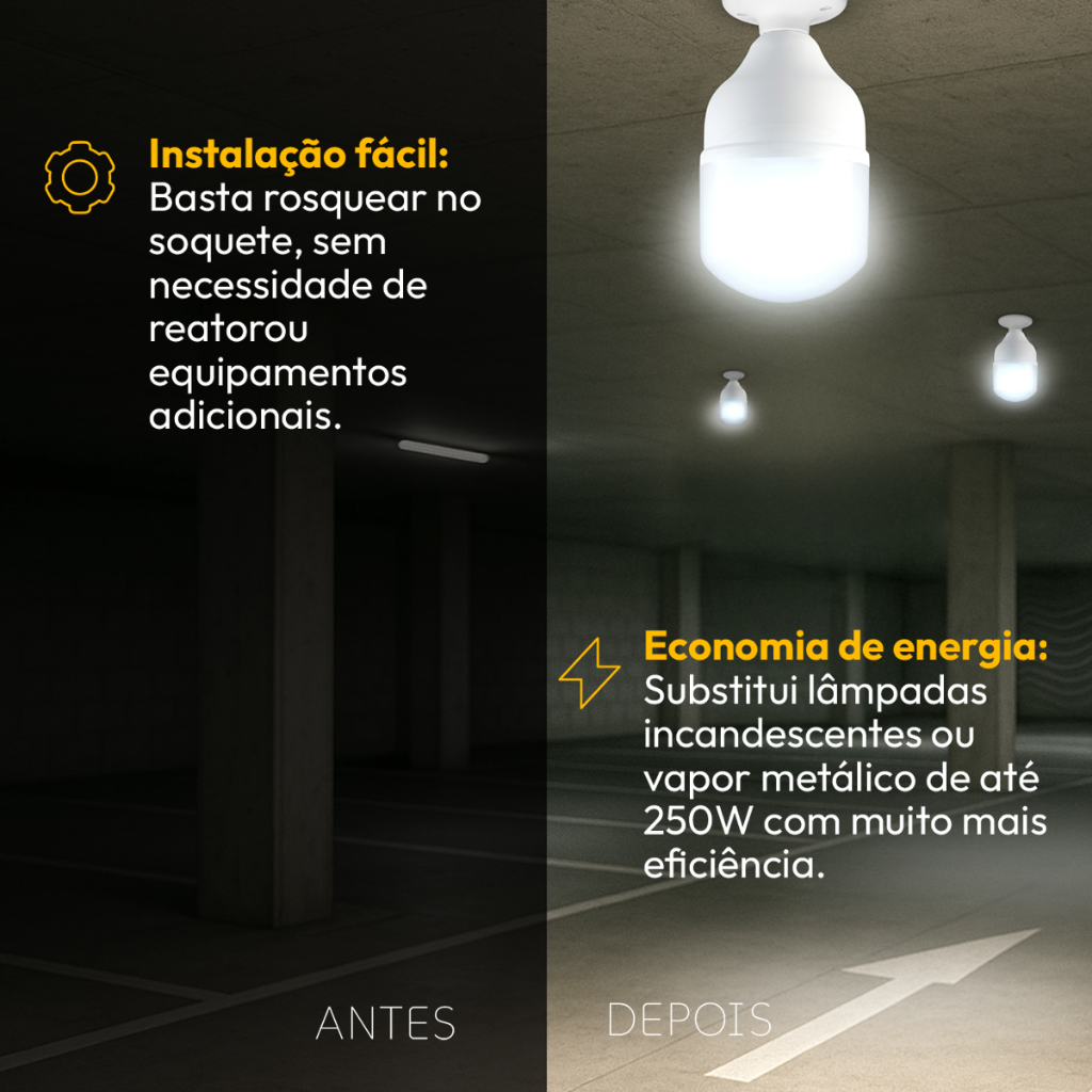 Iluminação potente e eficiente para grandes áreas! A Lâmpada LED Bulbo HP 50w da Alut by Avant é ideal para iluminação industrial e comercial. Propriedades: Kit 10 Lâmpadas LED Bulbo Base em alumínio, corpo e bulbo em plástico e alumínio para maior durabilidade. Não aquece o ambiente (não emite infravermelho). Driver interno isolado para maior segurança. Não desbota objetos (não emite ultravioleta). Livre de mercúrio, contribuindo para um ambiente mais sustentável. Baixo consumo de energia em comparação com lâmpadas incandescentes e fluorescentes. Alto fluxo luminoso, garantindo excelente iluminação. Medidas: Medidas da potencia de 20w: 14cm Altura / 8cm largura Medidas da potencia de 30w: 17,5cm Altura / 10cm largura Medidas da potencia de 40w: 20cm Altura / 11,8cm largura Medidas da potencia de 50w: 23,2cm Altura / 13,8cm largura Características de Funcionamento: Temperatura ambiente de -5°C a 40°C. Tensão de entrada Bivolt (100V a 240V). Temperatura de cor: BR6500K (Luz Branca). Ângulo de Abertura: 200° Uso Interno Vida útil estimada de 25.000 horas. Especificações Técnicas e Comerciais: Potência: 20w 30w 40w ou 50w Fluxo Luminoso: 1600 lúmens Temperatura de Cor: 6500K (Branco Frio) Base: E27 Garantia Oficial da Alut by Avant de 12 meses para defeitos de fabricação. Alut by Avant é uma marca reconhecida por oferecer soluções de iluminação inovadoras e eficientes. Com um compromisso com a qualidade e o design, produtos que combinam tecnologia de ponta e durabilidade.