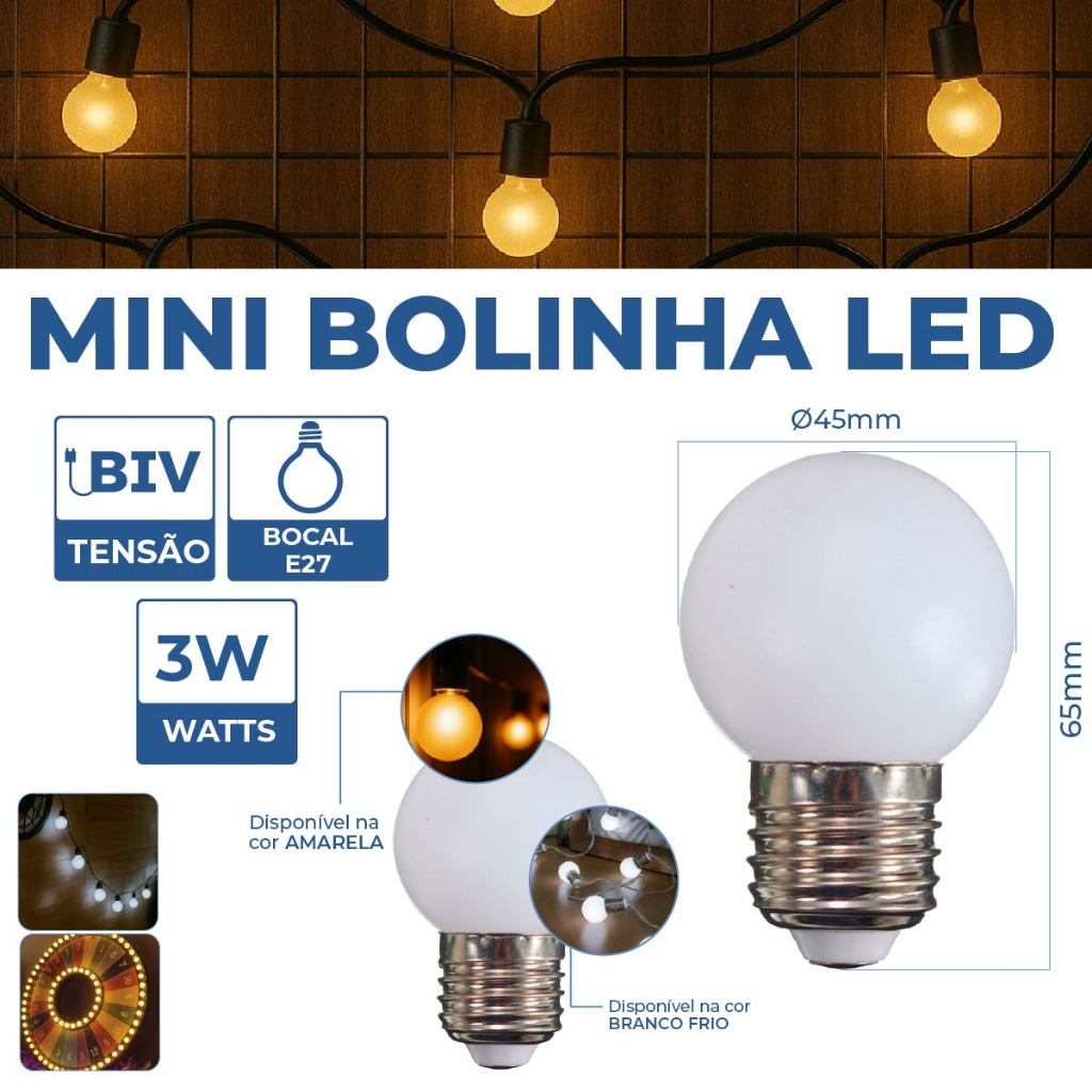 Kit 10 Lâmpadas Led Mini Bulbo Bolinha Luz Fria ou Quente 3W E27 110V-220V Bivolt