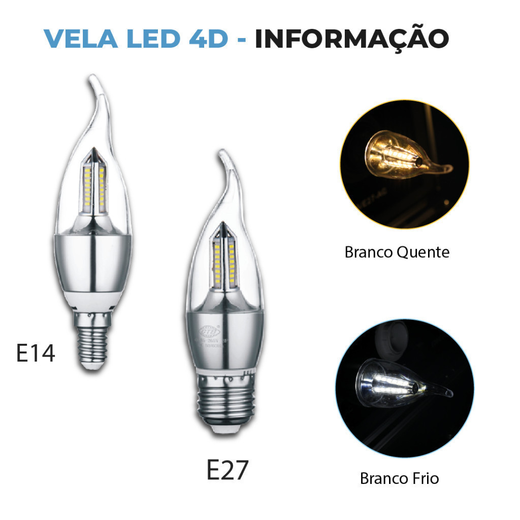 Kit 10 Lâmpadas LED Vela 4W E27 Bico Torto, Modernas, Branco Frio (6500K) ou Quente (3000K), Bivolt Pendente Mderno