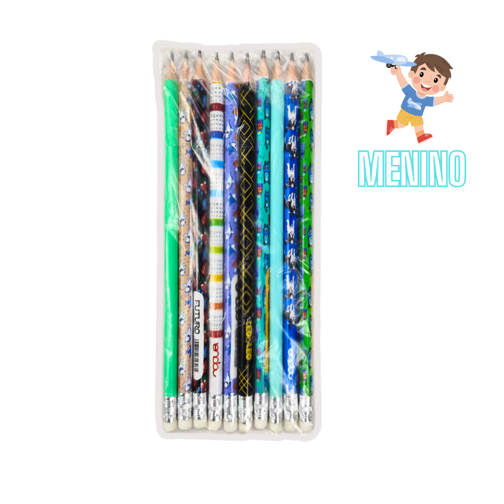 kit 10 Lápis Decorado Madeira Varios Modelos Material Escolar Escola Lapis Escrever