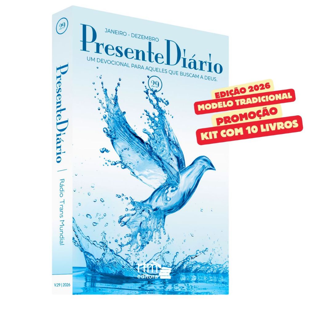 PRODUTO: Kit 10 Livros Devocional Presente Diário Tradicional Capa Água edição 2026 DESCRIÇÃO: Você tem em mãos um presente da RTM para a sua família: o Presente Diário 29. Com este devocional, vocês terão 365 oportunidades de aprender mais sobre Deus e testemunhar às pessoas sobre o amor dele por nós. A Rádio Trans Mundial publica o Presente Diário há 29 anos. Para celebrar esta marca, a edição que chega até você é muito especial. O farol é o símbolo do nosso selo especial deste aniversário do PD. Os textos, assim como o farol, são uma direção até o porto seguro, que é Cristo. A nossa oração é para que você e a sua família sejam abençoados e edificados com essa porção diária que nossa equipe produziu com muito carinho. FICHA TÉCNICA: - Peso: 2.220 kg - Dimensões: 11 x 17 x 1,5 cm - Autores: Autores Brasileiros de Diversas Partes do Brasil - Título: Presente Diário - Tipo de Capa: Brochura - Nº de páginas: 384 - Editora: RTM - ISSN: 2525-3107 Estoque disponível - ENVIO IMEDIATO!!! ================================================================== Clique no botão "Comprar agora" para garantir o melhor produto com o melhor preço!!! ==================================================================