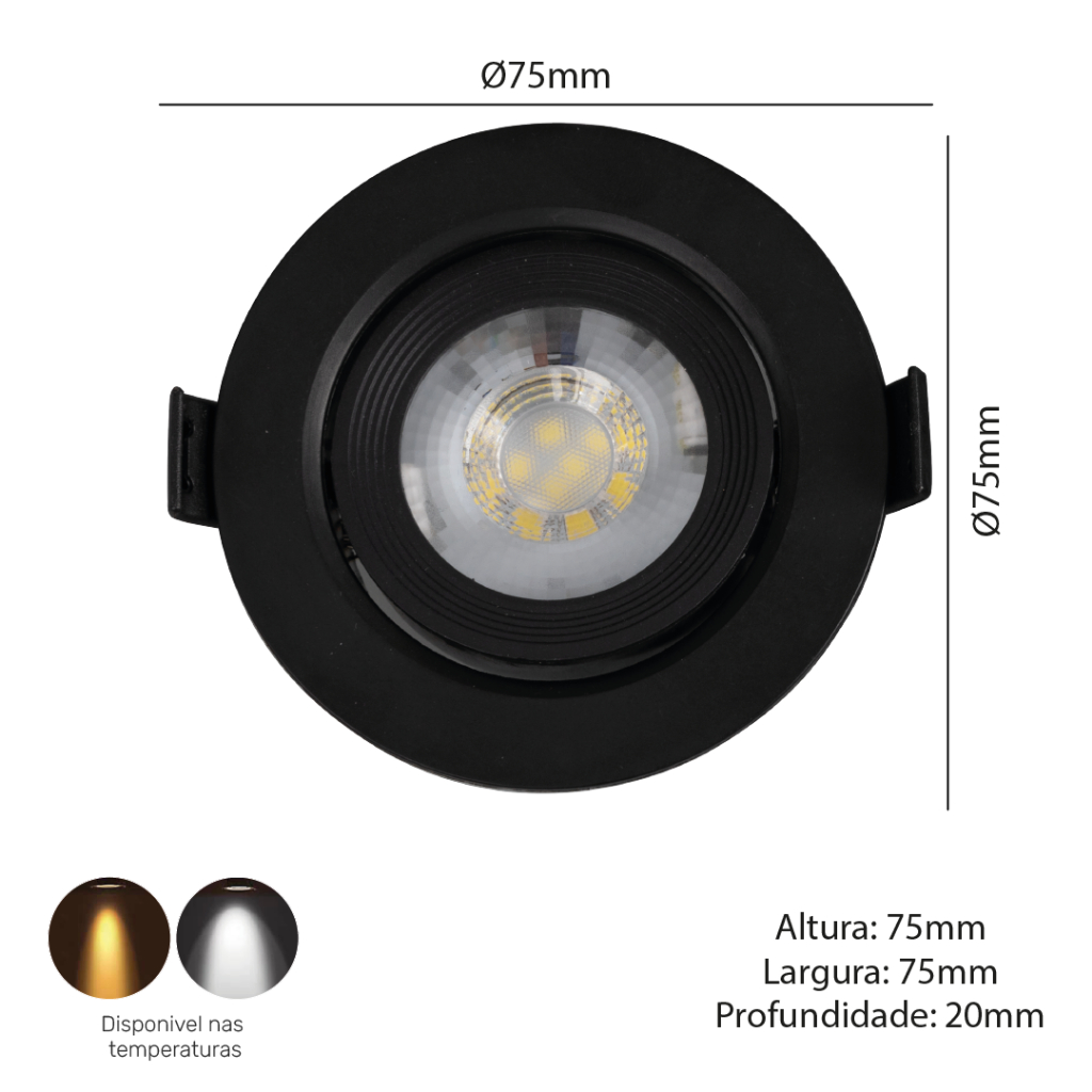 Kit 10 Luminária Spot Led Redondo Direcionável 3W Embutir Gesso Teto Preto |Luz Branca / Luz QuenteBivolt Spot Super LED