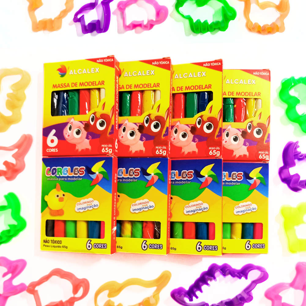 Kit 10 Massa de Modelar + 10 Mini Giz + 20 Forminhas Moldes P/ Kit Festa Aniversario Prenda Criança