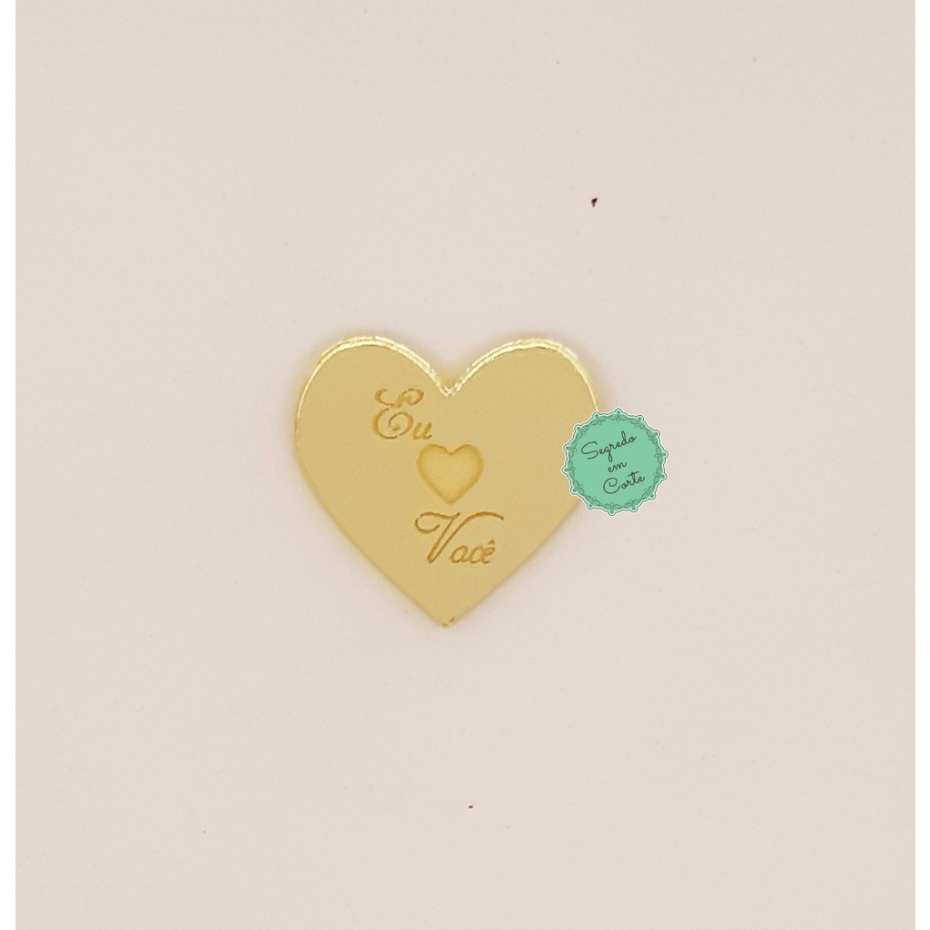 Kit 10 Medalhas tag de coração acrílico espelhado - Escrita Personalizada