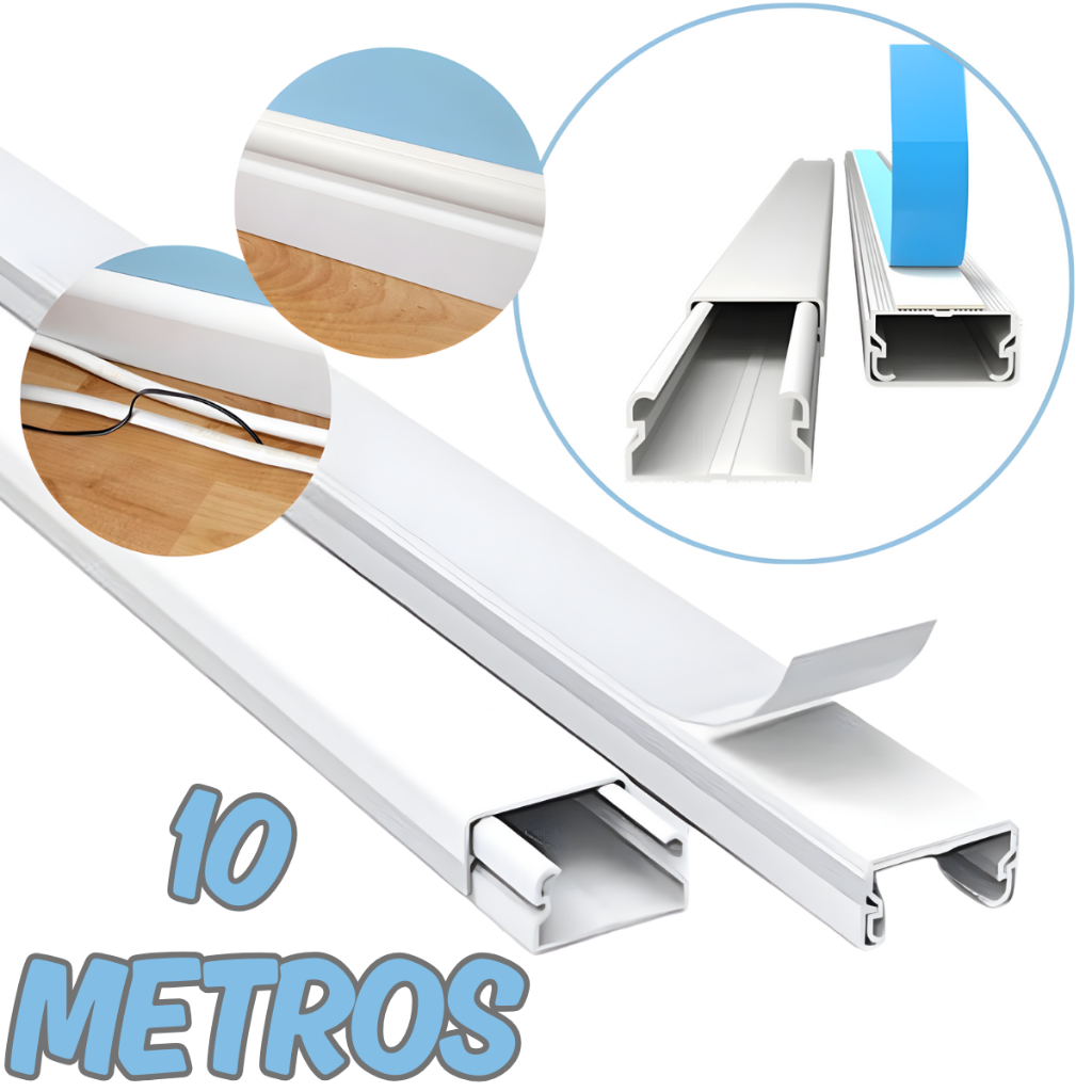 Kit 10 metros canaleta PVC 20x10 s/ divisória fita Dupla Face organizador Fio cabo tela mosquiteiro