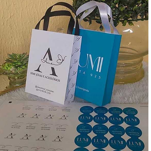 *SOMENTE IMPRIMIMOS CORES CLARAS. CASO SUA LOGO TENHA O FUNDO PRETO OU OUTRA COR ESCURA SUGERIMOS ALTERAR O FUNDO. Medidas da sacola: 13 x 10 x 3,5 cm O fundo não é colado e sim de encaixe, conforme vídeo do anúncio Enviar o logotipo da loja NO CHAT no formato jpeg. Todo material PARA CORES CLARAS é confeccionado em papel Offset 180g e pode ser personalizado com sua marca.