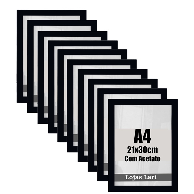 Fabricante de qualidade e garantia! Atenção: Antes de finalizar a compra, confirme o tamanho da moldura! - Imagem para moldura 21x30cm - Moldura Finalizada Tamanho 24x33cm Kit com 10 Molduras - 21x30xm Moldura com largura: 2CM MATERIAL: Moldura em madeira Eucalipto pintada laqueada. Cores disponíveis: Preto, Branco, Marrom e Pinus Fundo em MDF 3 mm. Acetato: Todos os quadros acompanham o acetato, como finalização do quadro. Transparente cristal de 0,20 mm Instalação Prático e fácil! Acompanha fundo com pendurador móvel, pode ser colocado na vertical ou na horizontal. Limpeza A limpeza dos quadros pode ser feita com pano úmido. Trabalhamos com diversos tamanhos e modelos de quadros, temos tamanhos A6, A5, A4, A3 e A2, consulte-nos! Aqui você conta com: -Bom atendimento; -Envio dentro do prazo; -Envio para todo Brasil; -Entrega do produto ou seu dinheiro de volta! Muito obrigado pela sua visita. Possui dúvidas? Mande sua pergunta >>>Visite nossa loja e conheça mais opções<<<