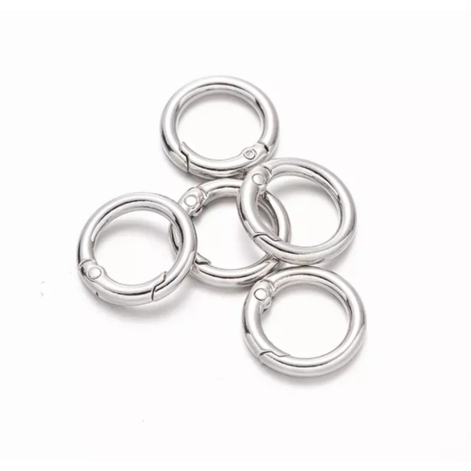 Produzido em zamac, a argola mosquetão é ideal para confecção de bolsas, chaveiros, coleira, lembracinha, artesanatos em geral e muito mais: Ficha Técnica Material: 100% Zamac Tipo: Argola Formato: redondo Quantidade: 10 peças Tamanho: 30mm Produto: importado ENVIO IMEDIATO