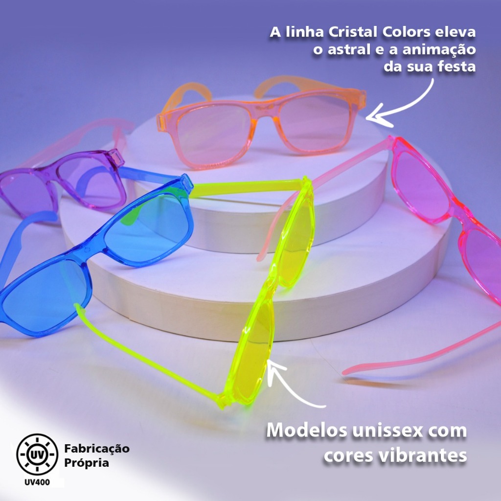 Kit 10 Óculos De Festa Sua Frase Cristal Colorido Casamento Festa Revoada Rave Balada Adquira Já