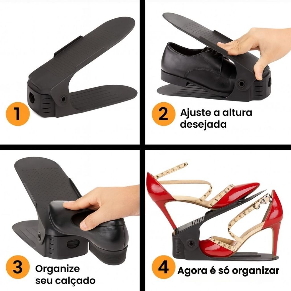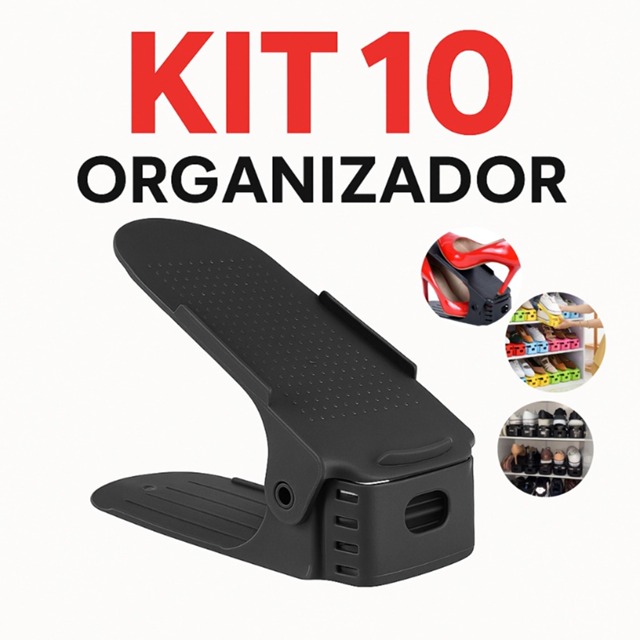 | Kit 10 Organizadores De Sapatos Com Regulagem De Altura Preto este produto | R$ 29,99 | 50% | 4.5/5 | — |