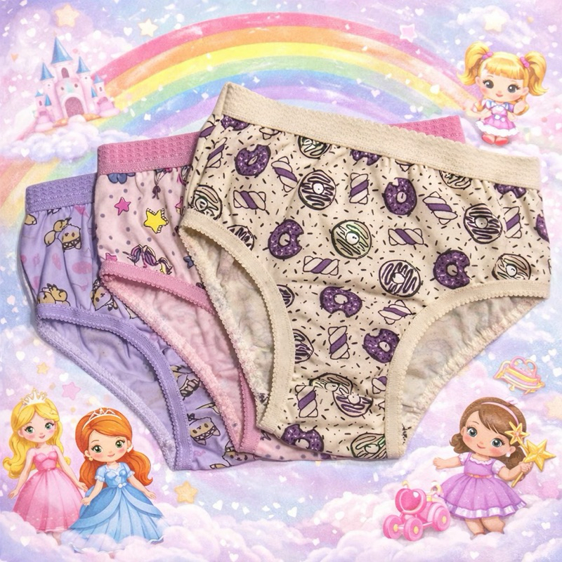 Calcinha infantil estampada, 100% algodão Ideal para ser usado no dia-a-dia, pois sua composição em algodão permite que a pele transpire. ATENÇÃO: Para que possa receber o produto em tamanhos diversificados (conforme seu pedido), após efetuar a compra informe no campo de perguntas ou através do nosso e-mail a quantidade desejada de cada tamanho. TAMANHOS P: 1 até 3 Anos, Medidas: Comprimento 19 cm / Largura 38-54 cm / Lateral 7 cm; M: 4 até 6 Anos, Medidas: Comprimento 22 cm / Largura 44-72 cm / Lateral 7 cm; G: 8 até 10 Anos, Medidas: Comprimento 25 cm / Largura 58-85 cm / Lateral 8,5 cm; GG: 12 Anos. COMPOSIÇÃO - TECIDO: 100% Algodão; Att. Equipe Louis And Lorenn