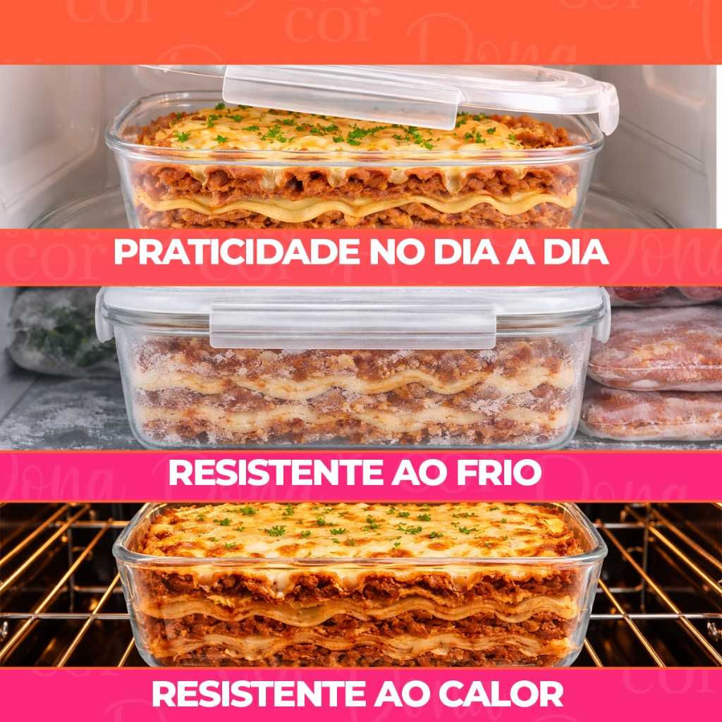 Pote de Vidro Hermético 640ml OliverHome (Kit com 5 ou 10 Unidades) Mantenha seus alimentos frescos por mais tempo e leve suas refeições com segurança. O Pote de Vidro Hermético 640ml é ideal para organização da geladeira, freezer e despensa, além de ser perfeito como marmita. Com tampa hermética de 4 travas e anel de vedação, evita vazamentos, ajuda a preservar o sabor e reduz a propagação de odores. Destaques do produto Vedação hermética com 4 travas: fechamento firme e seguro Ajuda a conservar por mais tempo: menos desperdício no dia a dia Vidro borossilicato resistente: ideal para uso frequente Versátil: freezer, micro-ondas, forno e lava-louças Livre de BPA: mais segurança para sua família Material e resistência Produzido em vidro borossilicato, suporta variações de temperatura e pode ir ao forno e ao micro-ondas sem a tampa. Material resistente para a rotina, sem absorver cheiros e com limpeza prática. Versatilidade de uso Perfeito para refeições prontas, lanches, porções, armazenamento de ingredientes e marmitas. Ideal para quem busca praticidade sem abrir mão de um produto durável e elegante. Ficha técnica Material do pote: vidro borossilicato Capacidade: 640 ml Dimensões: 7 x 12 x 17 cm Tampa: hermética com 4 travas Resistência térmica: até 300°C (sem tampa) Uso: freezer, micro-ondas, forno (sem tampa) e lava-louças Segurança: livre de BPA Marca: OliverHome Conteúdo da embalagem Kit com 5 ou 10 Unidades Instruções de uso e cuidados Primeiro uso: lavar com água morna e sabão neutro Forno e micro-ondas: utilizar somente o pote, sem a tampa Vedação: encaixar corretamente o anel e fechar todas as travas Higienização: pode ir à lava-louças; evite produtos abrasivos e choques térmicos Transforme sua rotina de armazenamento com mais organização, praticidade e segurança.